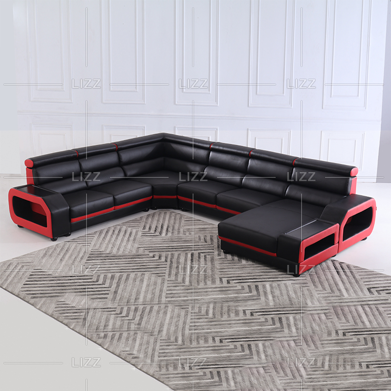 Single L-förmiges schwarzes und rotes Wohnzimmersofa